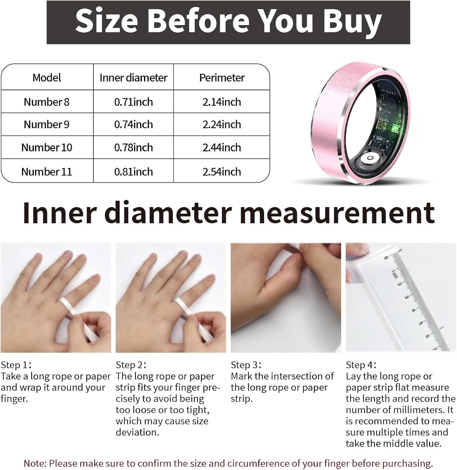 Size Before You Buy: Please according to the wearing instructions on the details page, first measure your finger circumference, then calculate the inner diameter of your finger, find the corresponding ring size number and select it. ATTENTION: Wearing incorrect-size ring (too small or too big) will affect the accuracy of the APP data. Please choose the correct size.