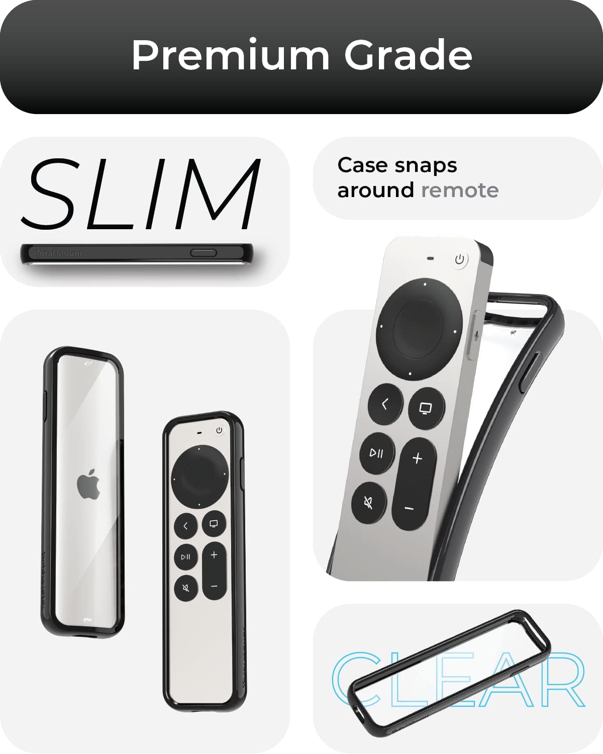AIR RIM – Protects your Apple TV Remote from gaming accidents, missed passes, bumps off the couch, and even extreme falls. This case is a lot less expensive than buying a new Apple TV Remote and provides peace of mind knowing your remote is protected.SLIM – Hybrid case with a flexible perimeter cover and a clear, rigid back provides the drop protection you need while showcasing the premium aluminum housing of the Apple TV Remote. (Apple TV Remote is not included.)PERFECT FIT – The case snaps precisely around the Apple TV Remote and provides unobstructed button access, a huge infrared window, and easy charging access without having to remove the case.COMPATIBILITY – Please see the compatibility image.TOTAL MOUNT is the trusted leader in electronics mounting. With a passionate team headquartered near Seattle, over 70 patents, over 50,000 five-star reviews, and a long history of quality since being founded in 2007, TOTAL MOUNT consistently delivers reliability and premium features.