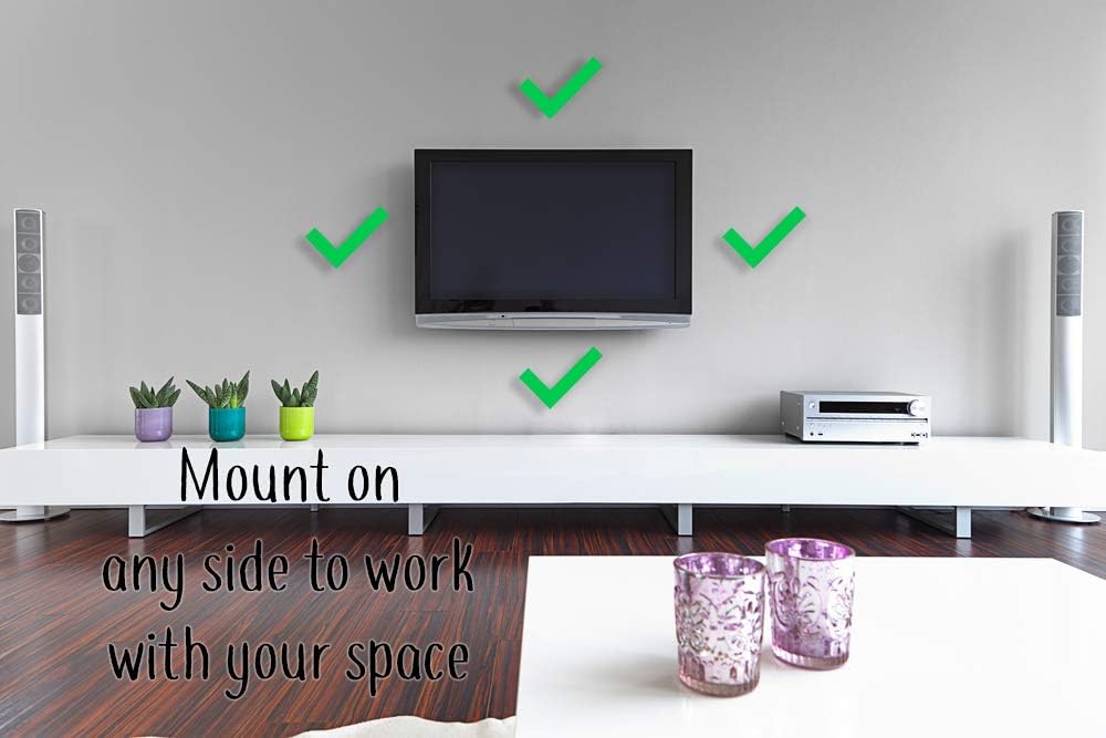 The Easy Mount allows for the wires to come out the sides or bottom, meaning you can mount on any side of the TV for best placement (top, bottom, right, or left).