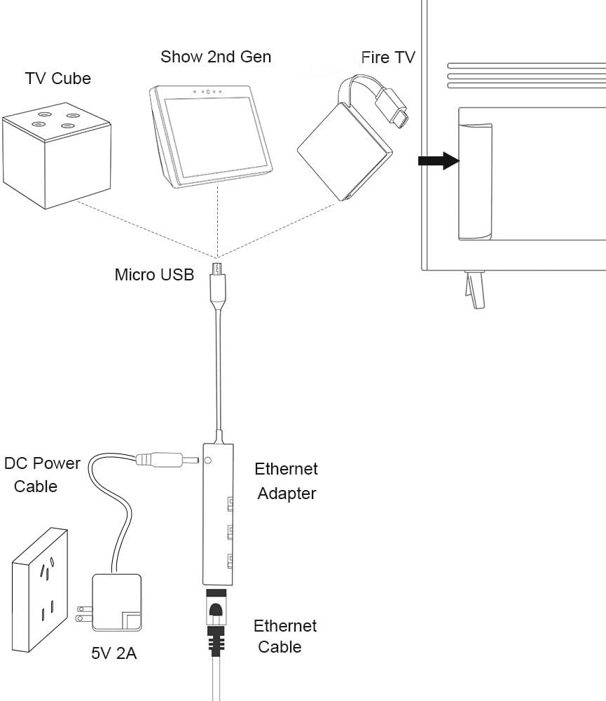 Easy to set up – Simply connect the Ethernet adapter into your Fire TV Cube and plug in an Ethernet cable directly from your router, then connected 5V 2A wall charger with included DC cable