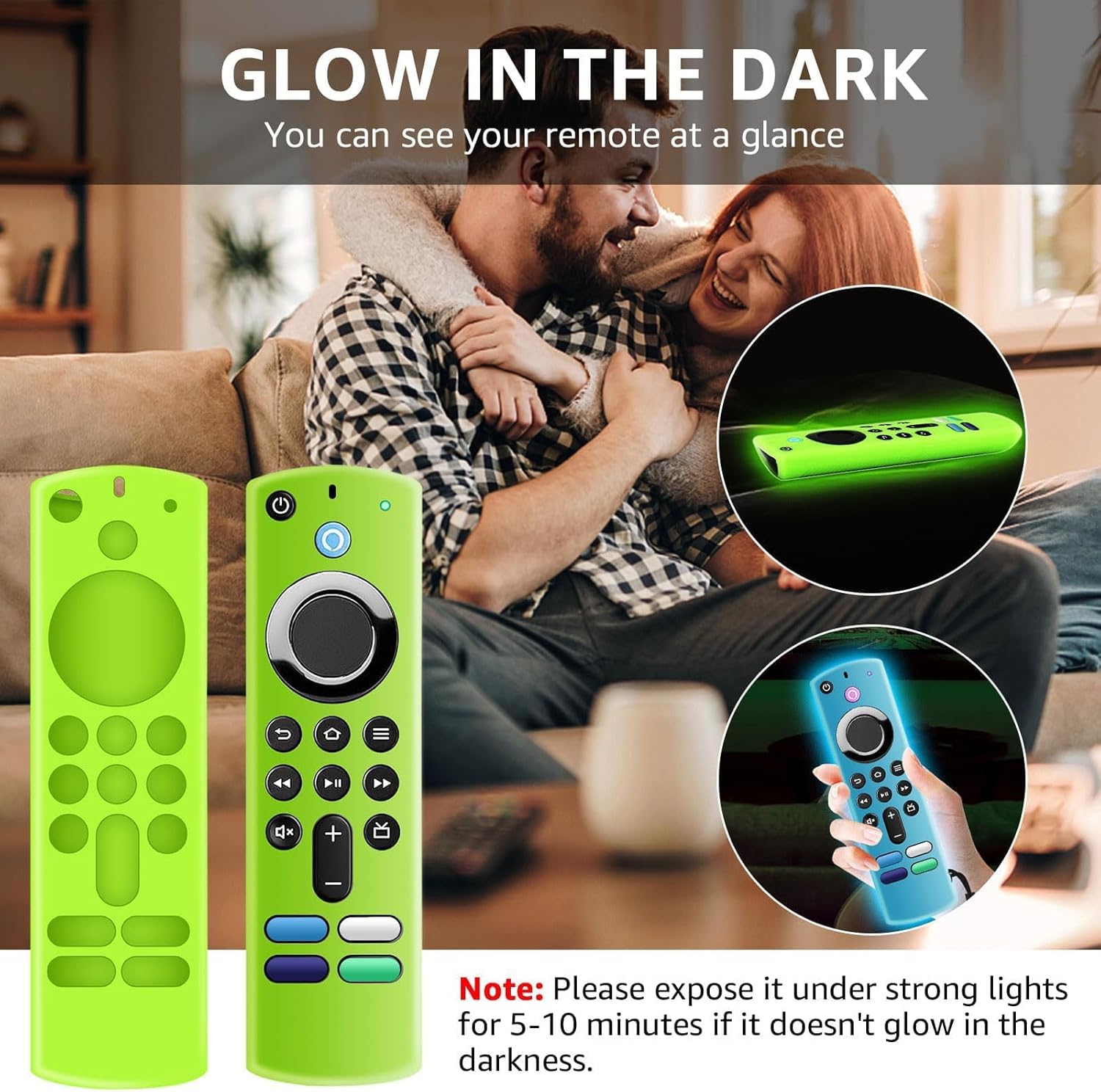 3 Pack Fire Stick Remote Cover, Silicone Remote Case for 2021 Fire TV Stick 4K/Alexa Voice Remote 3rd Gen, Anti Slip Silicone Protective Case with Lanyard(Glow Blue & Glow Green & Red)