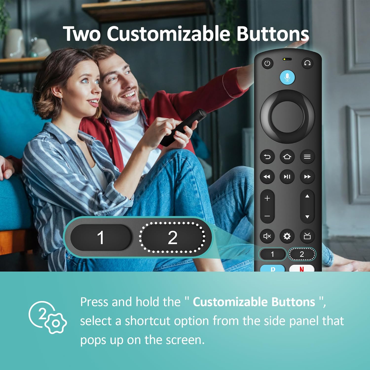 Customizable Buttons: With 4 shortcut buttons and 2 customizable buttons, Just press and hold [1] or [2] to program customizable buttons, you can create your own shortcuts to favorite channels, apps, or any commands, and a new shortcut to the on-screen BT menu that lets you pair your wireless headphones fast
